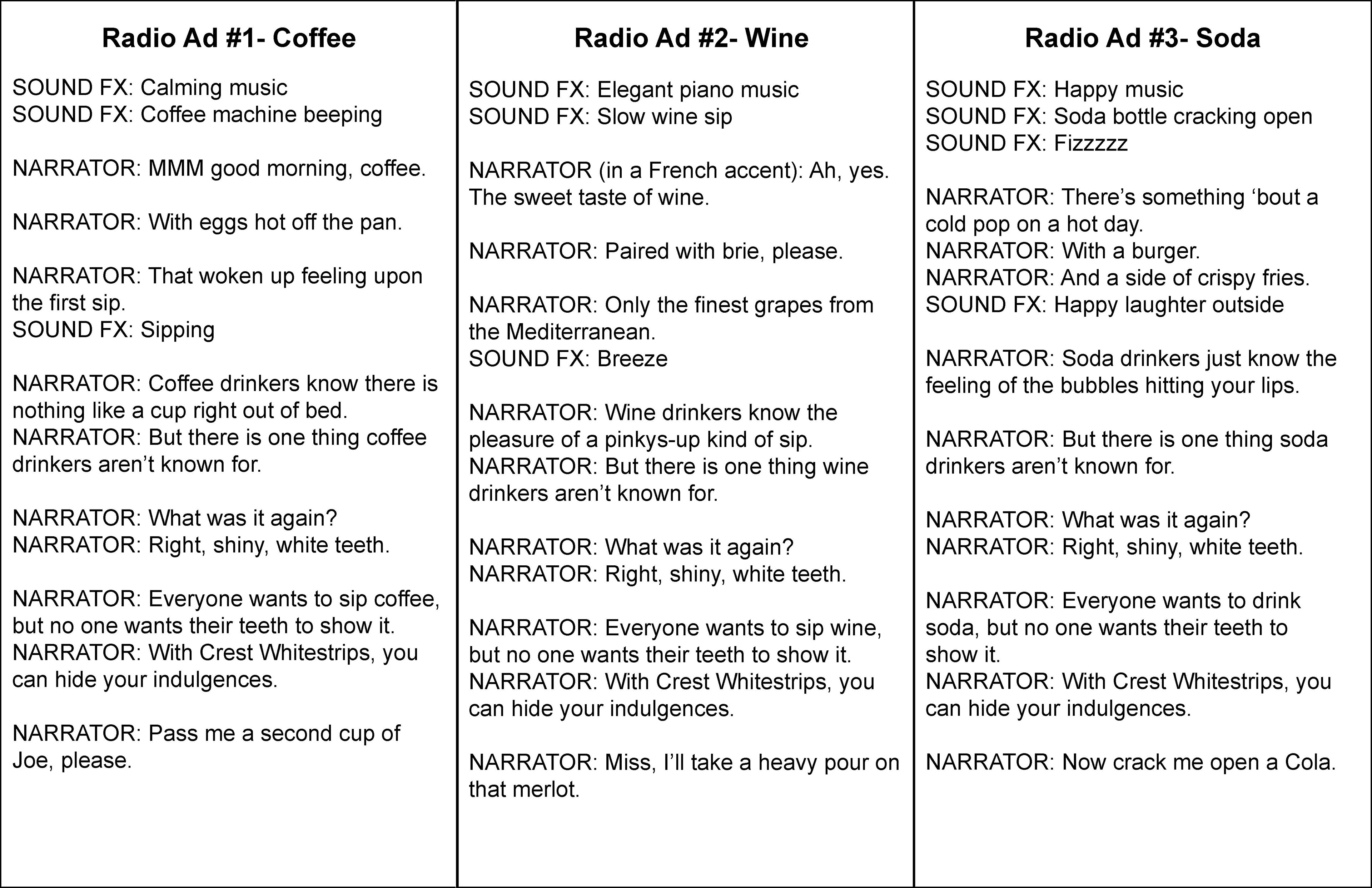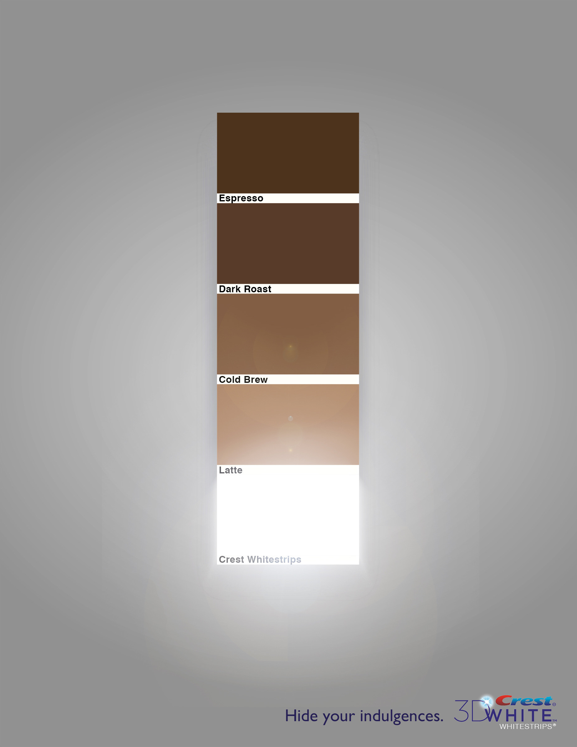 Show how Crest Whitestrips are so powerful that they can hide these indulgences.